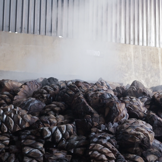 Following harvest, the mezcaleros prepare a stone-ground oven by igniting locally-sourced firewood underneath large stones that form the base of the oven. Once the flames die down and the stones are heated, our distiller fills the oven with the piñas and then covers the pit with a cloth tarp and dirt; this ensures that the oven is fully insulated. The piñas roast for 5 days, releasing their natural sugars.