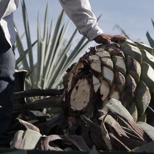 When the agave matures, our mezcaleros cut off the quiote (a large flowering stalk which emerges when the agave is matured), a process known as “capón.” This method is used to increase the yield of the agaves and to enhance flavor. When the agave is ready to be fully harvested, the mezcaleros cut off the agave leaves to prepare the piña, or heart, of the plant.